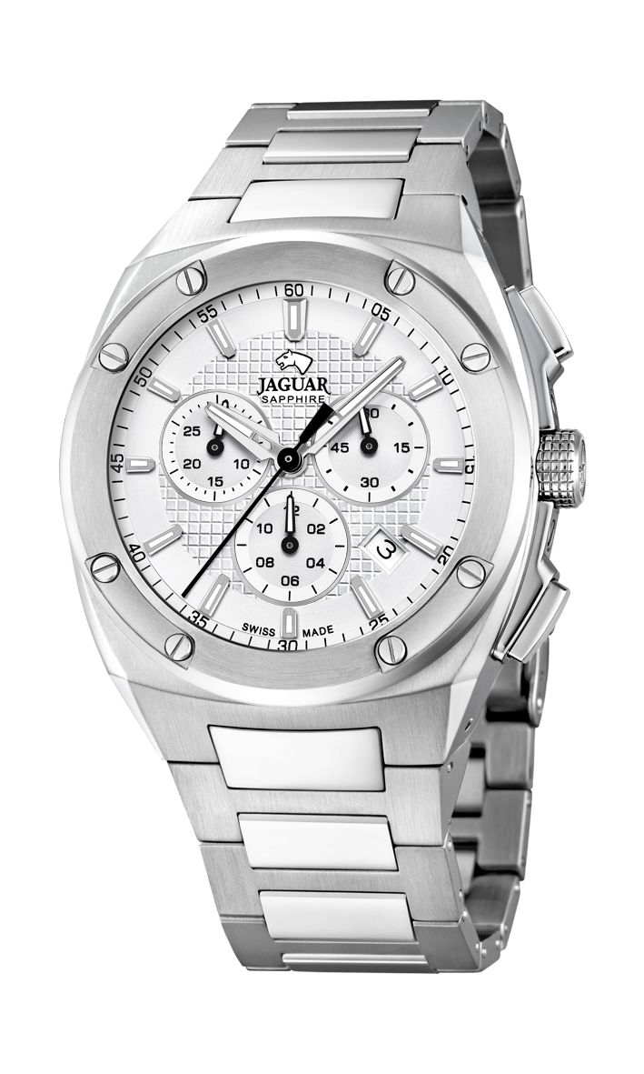 Мужские часы Jaguar J805/D с круглым корпусом из нержавеющей стали и серебристым стальным браслетом представляют собой элегантную модель для повседневного использования. Их диаметр 44,5 мм обеспечивает удобочитаемость и современный внешний вид, подходящий для активного образа жизни. Черный циферблат с накладными метками и стрелками, покрытыми SuperLuminova, гарантирует четкую видимость даже в условиях слабого освещения, что делает их практичными в любое время суток.